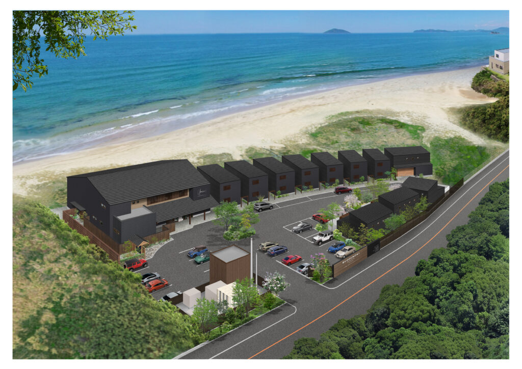 福岡県糸島市二丈鹿家(しかか)。鳴き砂が残る美しい海岸「姉子の浜」の目の前に、2026年6月、「THE SHIKAKA HOTEL & RESORT BUDOUNOKI(ザ・シカカ ホテル&リゾート ぶどうの樹)」が開業いたします。