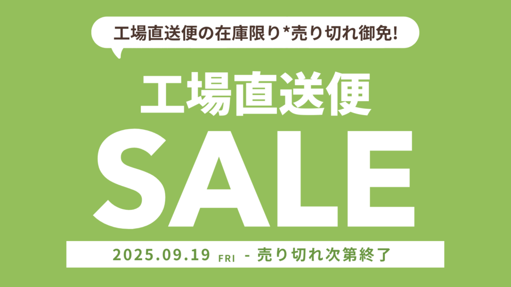 オンラインストア 9月限定!売り切れ御免の「工場直送SALE」開催中!!
