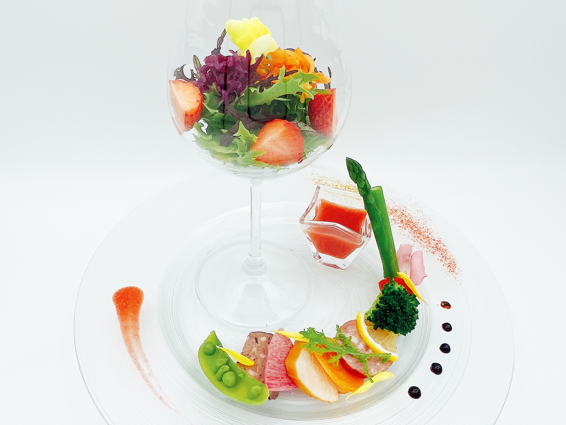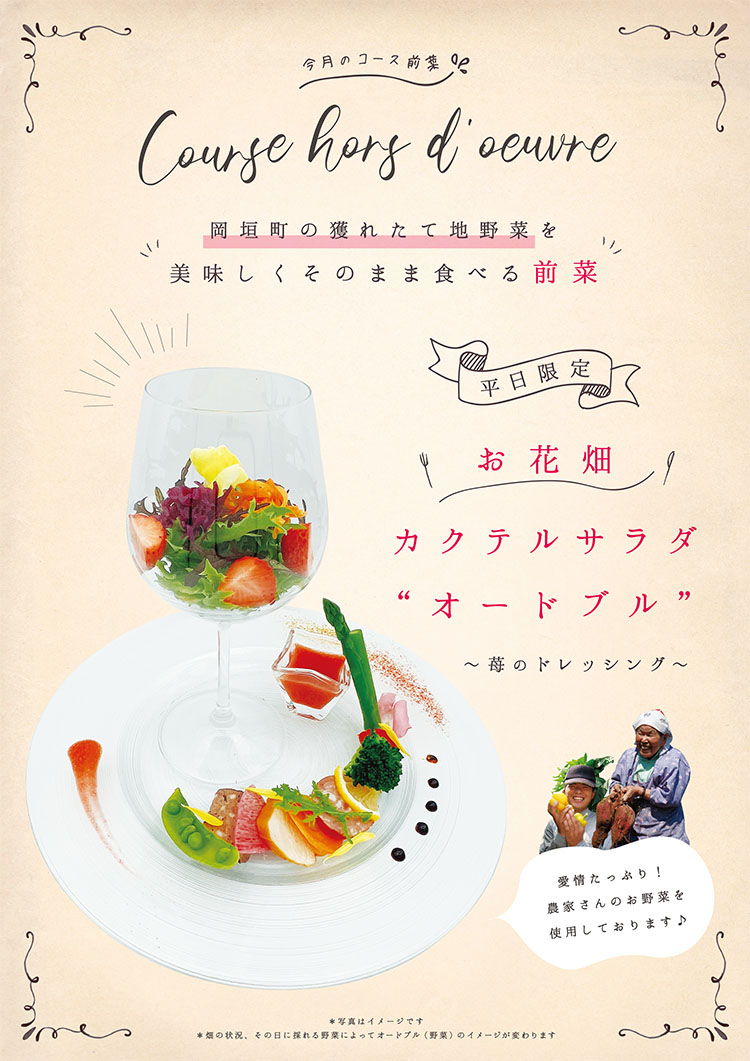 地元岡垣で採れた季節のお野菜で創る『ぶどう畑のオードブル』は女性のお客様に大人気です。